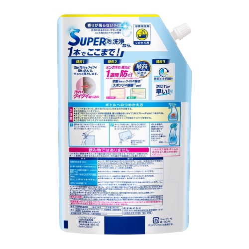 ●必ず「バスマジックリンSUPER泡洗浄香りが残らないタイプ」のスプレーボトルにつめかえる。