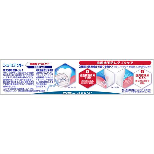 ◆知覚過敏で歯がシミるのを防ぐとともに、2種類の薬用成分(IPMP**・MAG***)で歯周病を予防。さらにバクテリアを殺菌し口臭も予防します。