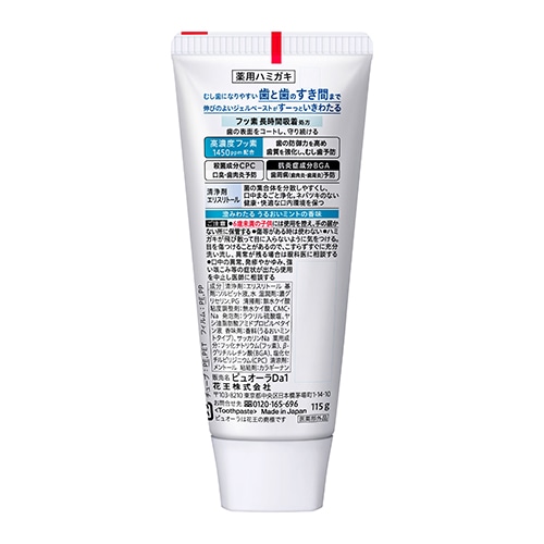 薬用成分:フッ化ナトリウム(フッ素)、β-グリチルレチン酸(BGA)、塩化セチルピリジニウム(CPC)