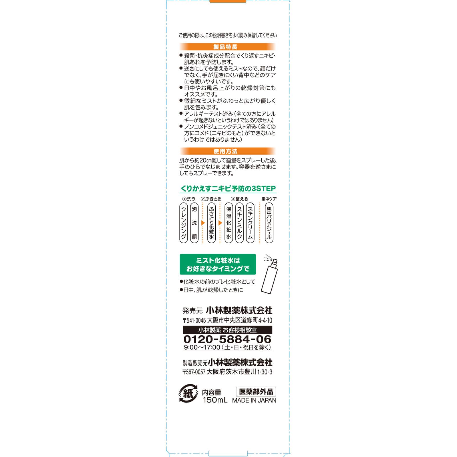 ●ノンコメドジェニックテスト済み(全ての方にコメド(ニキビのもと)ができないというわけではありません)
