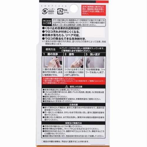 ※2 くもり止めは50×50cmの鏡に対して約15回使用できます。