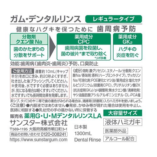 薬用/ガム/GUM/オーラルケア/マウスケア/マウスウォッシュ/液体歯みがき/液体/歯磨き/殺菌/口臭予防/口臭防止/口中浄化/むし歯予防/歯周病予防/歯肉炎/歯周炎/虫歯/ムシ歯/口臭ケア/口臭対策/CPC/BKC/歯茎ケア/はぐき/ハグキ炎症/口腔ケア/口内洗浄液/オーラルフレイル/女性/男性/20代/30代/40代/50代/大容量/医薬部外品/サンスター