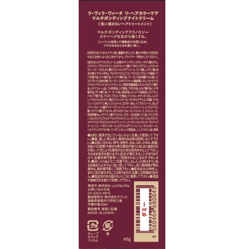 ◆髪にうるおいと補修成分を閉じ込める夜用ヘアクリーム。就寝前に使用することで、眠っている間に髪内部へじっくりと浸透し、時間をかけてしっとり保湿すると同時にダメージを補修します。翌朝には、しなやかでツヤのあるまとまる髪に。