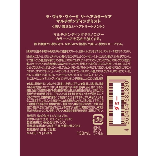 名 称 《セット販売》 ラ・ヴィラ・ヴィータ リ・ヘア カラーケア マルチボンディングミスト (150ml)×2個セット