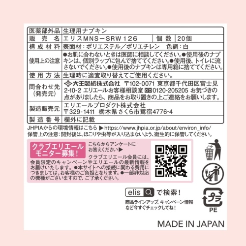 使用後のナプキンは、個別ラップに包んで捨ててください。