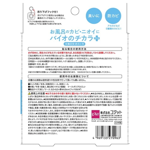 ●本品設置中に殺菌・抗菌効果の高い商品との併用はバイオが死滅する恐れがありますのでおやめください。また、浴室内での消毒や殺菌などは行わないでください。