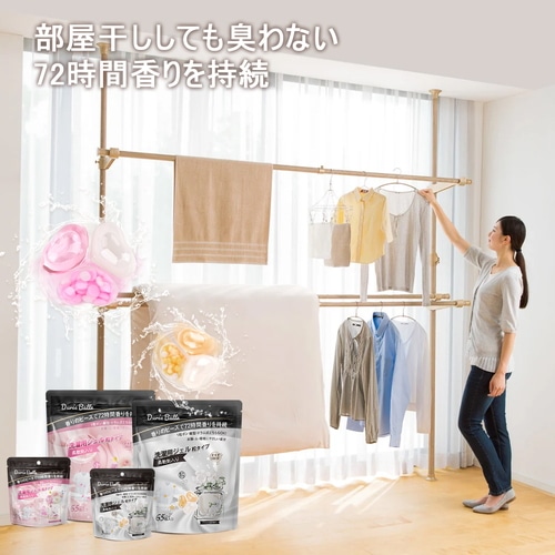 ●1粒の中に洗剤・柔軟剤・72時間香りを持続するビーズが入っているので簡単に洗濯ができます。