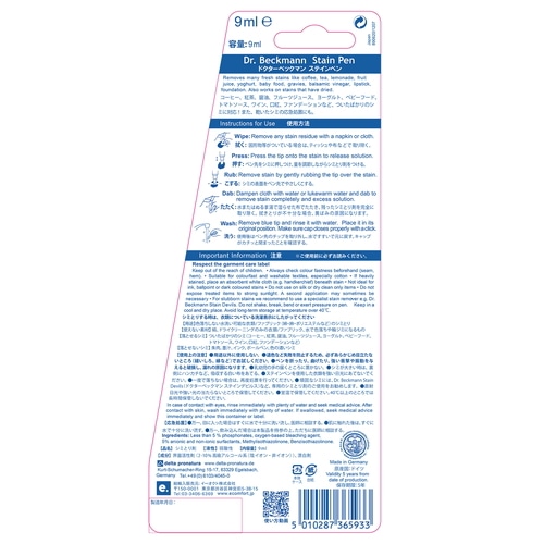●頑固なシミには、Dr.Beckmann StainDevils(ドクターベックマン ステインデビルス)など、専用のシミとり剤のご使用をお勧めします。