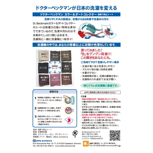 ●色の濃い衣類(特に綿素材)や色落ちしやすい衣類には、シートを2枚入れてください。