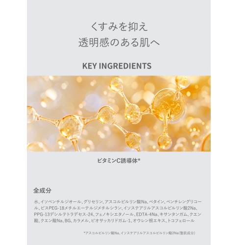 ◆2種類のビタミンC誘導体を配合した美容液。肌との相性を追求したオリジナル処方で、ベタつかずにみずみずしいテクスチャーがデイリーケアにぴったり。