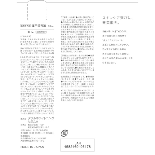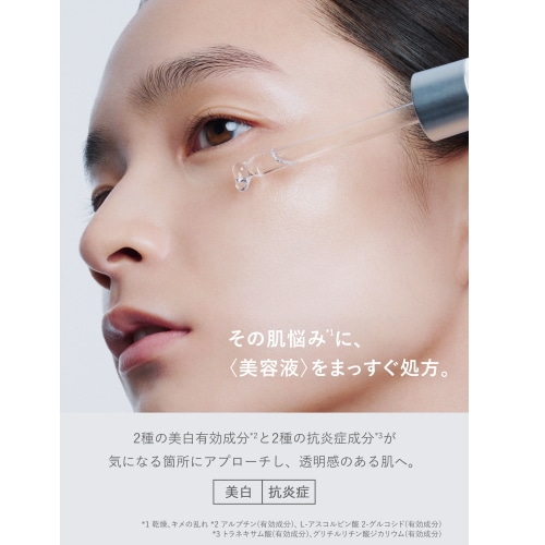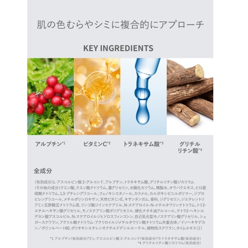 ◆4種の薬用成分配合、芯まで(*1)美白(*2)美容液〈医薬部外品〉。