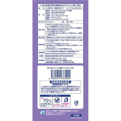 ・外 出 時 に 使 っ た パ ッ ド は 持 ち 帰 り ま し ょ う 。 ●尿 モ レ に は 尿 ケ ア 専 用 品 を お 使 い く だ さ い ● 生 理 用 ナ プ キ ン で は あ り ま せ ん 。 ● 袋 自 の 吸 収 に は 不 向 き で す 。