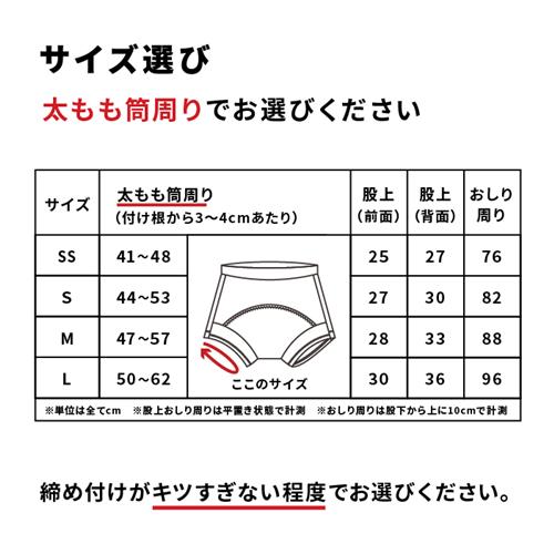 ◆不快を伴う強い締付けを感じた場合は使用を中止して下さい。(※何度か着用することで太もも部分の締付けが徐々に緩み、着用サイズの不快感は軽減されることがあります。)
