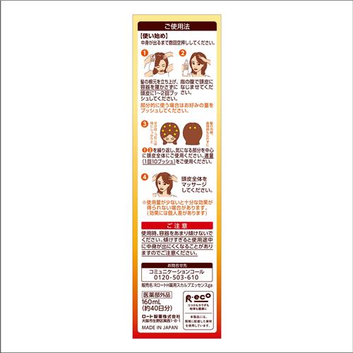 ②指の腹で頭皮になじませてください。 部分的に使う場合はお好みの量をプッシュしてください。