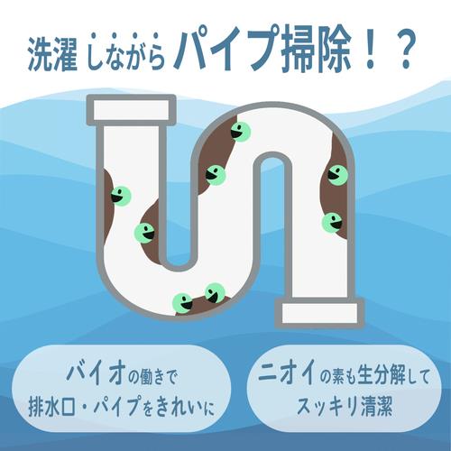 ●使用後の排水は配合成分の力で自然の浄化作用(生分解力)を高め、パイプに付着した汚れを落とし、水質もきれいにします。