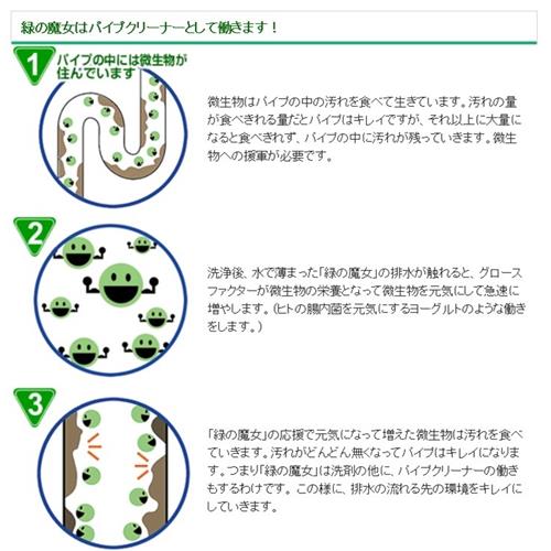 ●使用後の排水は配合成分の力で自然の浄化作用(生分解力)を高め、パイプに付着した汚れを落とし、水質もきれいにします。