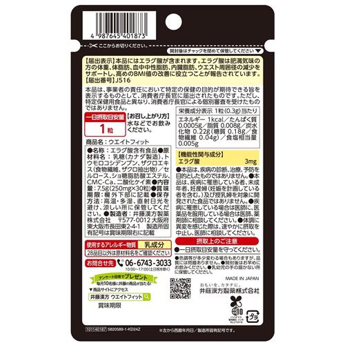 区分 機能性表示食品/ウエイトフィット/ダイエット/エラグ酸/肥満/体重/体脂肪/血中中性脂肪/内臓脂肪/ウエスト周囲径の減少/高めのBMI値/機能性表示食品/井藤漢方/原産国:日本