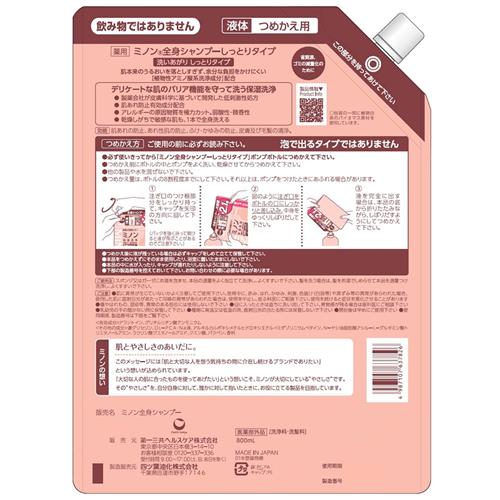 ●必ず使いきってから「ミノン全身シャンプーしっとりタイプ」ポンプボトルにつめかえて下さい。