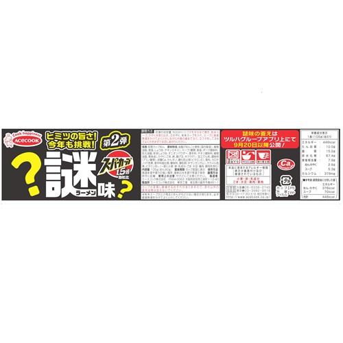 栄養成分:1食(105g)当たり エネルギー:446kcal、たん白質:10.0g、脂質:15.2g、炭水化物:67.4g、食塩相当量:7.9g(めん・かやく:2.6g、スープ:5.3g)、カルシウム:379mg