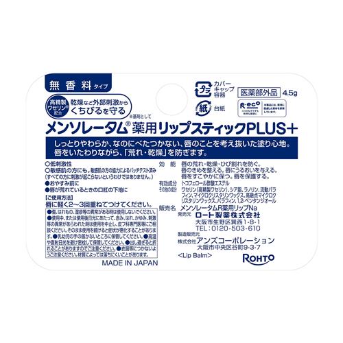 商品名称 ロート製薬 メンソレータム 薬用リップスティックプラス 無香料 4.5g リップクリーム リップ