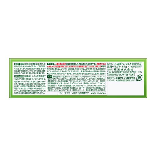 薬用成分:PEG-8、乳酸アルミニウム、ゼオライト、フッ化ナトリウム(フッ素)、アラントインクロルヒドロキシアルミニウム(ALCA)、塩化セチルピリジニウム(CPC)、β-グリチルレチン酸(BGA)