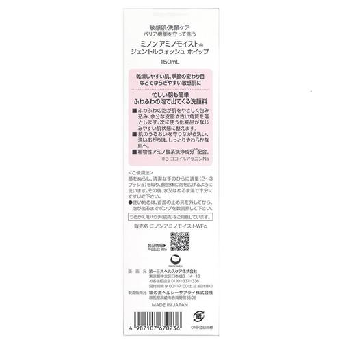 ・顔をぬらし、清潔な手のひらに適量(2-3プッシュ)を取り、顔全体に泡を広げるように洗います。