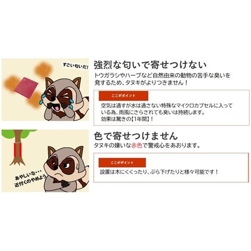 ※注意2:設置場所や天災・豪雨等の極端な気象条件化においては、十分な忌避効果が現れない場合があります。