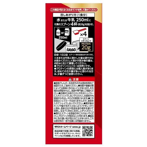 <召しあがり方(1食分)> ●水または牛乳250mlに付属のスプーン4杯(約28g)を溶かす。 ●目安:1日2回(スプーン1杯の目安はすりきりです)