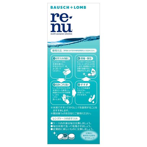 (3)消毒/保存:レンズケースに本剤を満たし、レンズを入れ、ケースの蓋を完全に締めます。そのまま4時間以上放置します。