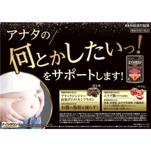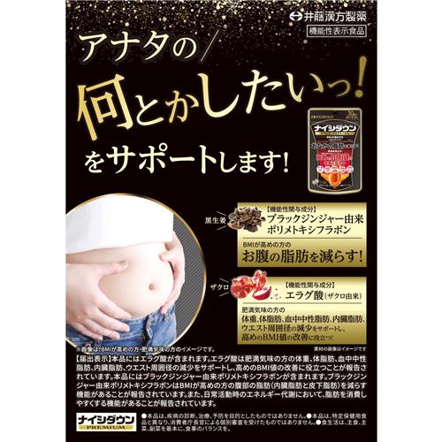 ●BMIが高めの方の腹部の脂肪(内臓脂肪と皮下脂肪)を減らす機能がる、機能性関与成分ブラックジンジャー由来ポリメトキシフラボンが含まれています。