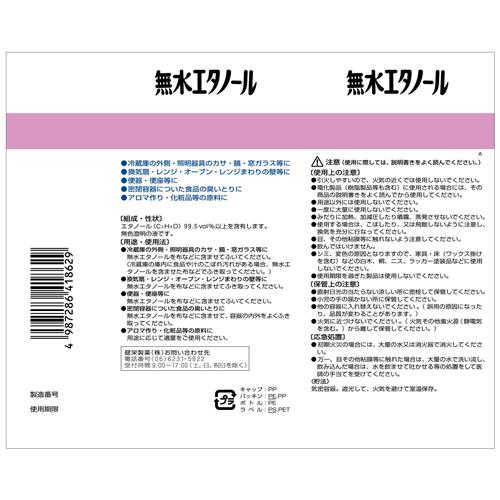 ●密閉容器についた食品の臭いとりに。 無水エタノールを布などに含ませて、容器の内外をよくふき取ってください。