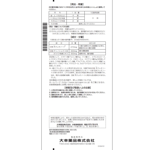 ・日局木クレオソート※:270mg:大腸の過剰なぜん動運動の正常化、腸管内の水分量の調整