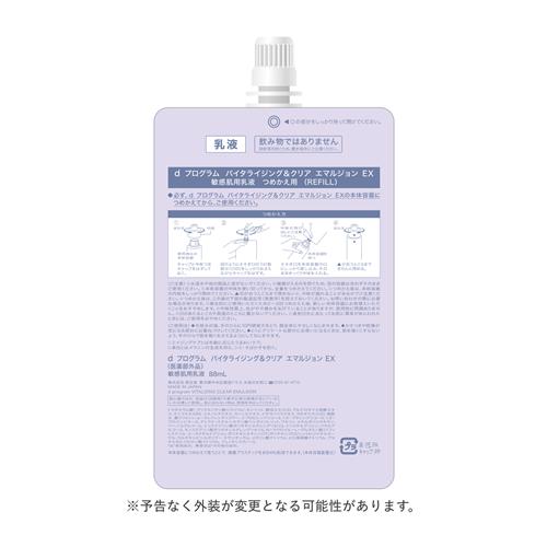 ●必ず、d プログラム バイタライジング&クリア エマルジョン EXの本体容器につめかえてから、ご使用ください。
