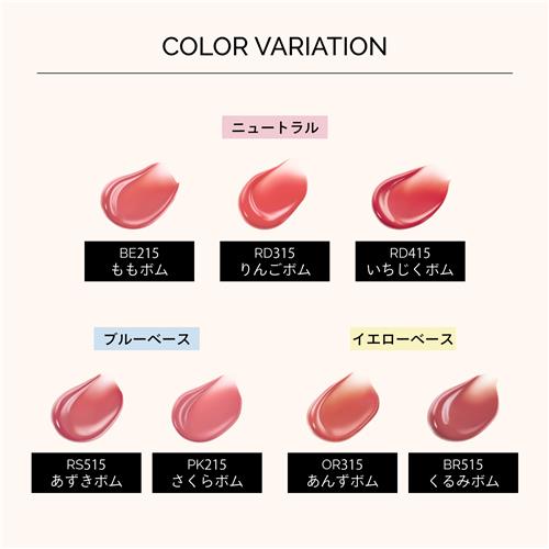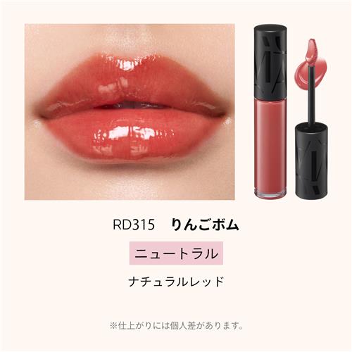 ●つけたての発色をキープしながら透明度の高いツヤがあふれ出し唇をまるごと包み込む。