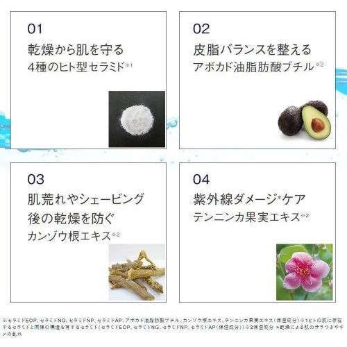 ●乾燥、ベタつき、シェービングや紫外線によるかさつきから肌を守るディープエフェクトコンプレックス※配合。