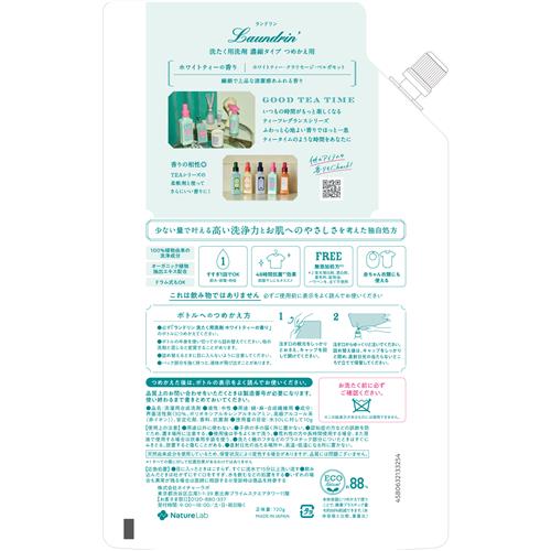 ●ランドリンTEAシリーズの柔軟剤の香りとも大変相性がよい、濃縮コンパクト中性洗濯洗剤。