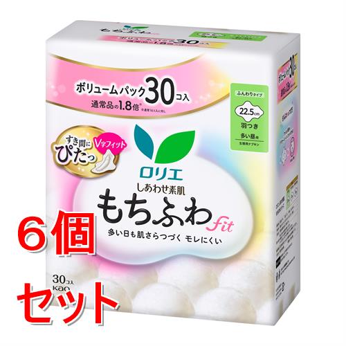 《セット販売》 花王 ロリエ しあわせ素肌 もちふわfit ボリュームパック 多い昼用22.5cm 羽つき 30個×6個セット【医薬部外品】
