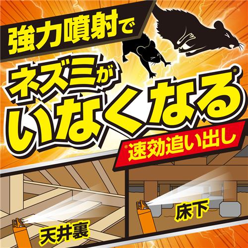 ◆恐怖成分で強力追い出し&ニオイ慣れしにくい!有効成分グアヤコールによる強力な追い出し効果があります。ジェット噴射で天井裏・床下に届く。無風時最大 10m まで届き、広い屋根裏の奥までしっかり届く!