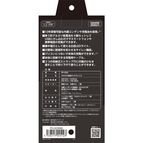 ※手回し発電や内蔵充電池からスマートフォンなどへの充電はできません