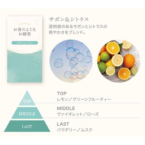 ●透明感のあるサボンとシトラスの爽やかさをブレンドした上質なお線香です。