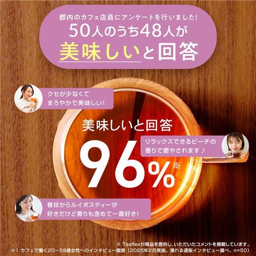 カロリー:11.3栄養成分:イソマルトデキストリン(国内製造)、ルイボス茶エキス末(ルイボス茶、オリゴ糖)、大麦乳酸発酵液ギャバ、ローズマリーエキス末、りんご繊維/トレハロース、環状オリゴ糖、L-テアニン、ナイアシン、プルラン、V.C、香料、ヒアルロン酸、V.B2、V.B6、V.B1