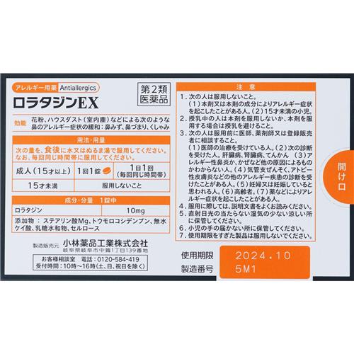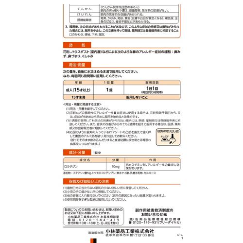 ◆眠くなりにくく、口のかわきも少ない第2世代抗ヒスタミン成分「ロラタジン」のお薬です 。