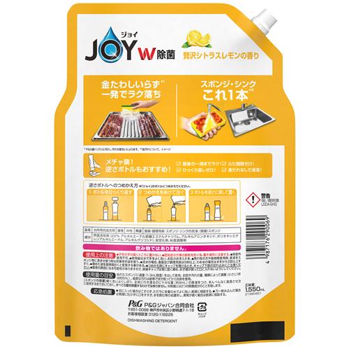 ◆2つの除菌成分でスポンジ除菌贅沢シトラスレモンの香りジョイW除菌ボトルと逆さボトルにも!
