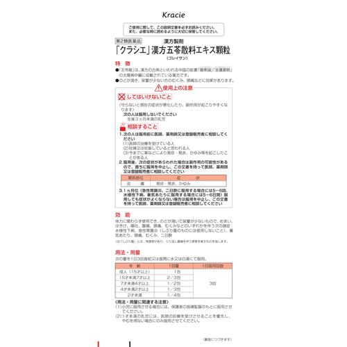 五苓散エキス(1/2量) 1000mg (タクシャ2.5gチョレイ・ブクリョウ・ビャクジュツ各1.5gケイヒ1.0gより抽出。)