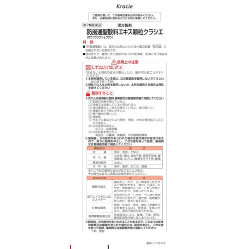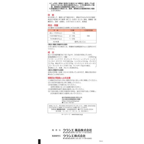 防風通聖散エキス(1/2量) 2850mg (トウキ・シャクヤク・センキュウ・サンシシ・レンギョウ・ハッカ・ケイガイ・ボウフウ・マオウ各0.6gショウキョウ0.2gダイオウ0.75g無水ボウショウ(硫酸ナトリウム)0.375gビャクジュツ・キキョウ・オウゴン・カンゾウ・セッコウ各1.0gカッセキ1.5gより抽出。)