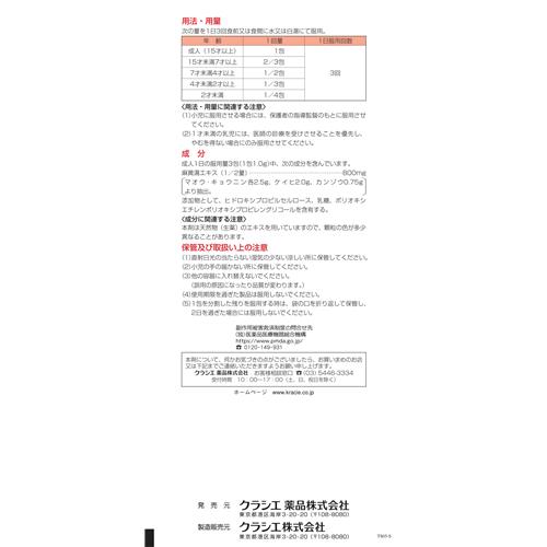 ●かぜのひきはじめで、さむけがして発熱、頭痛があり、身体のふしぶしが痛い場合の感冒、鼻かぜに効果があります。