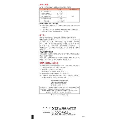 本剤は天然物(生薬)のエキスを用いていますので、顆粒の色が多少異なることがあります。