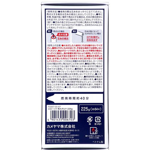 燃焼時間は無風・気温20-28度前後の環境下における平均値です。