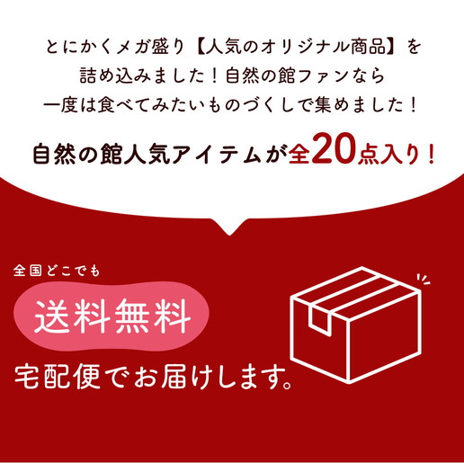 全20点入り⇒とにかくメガ盛り★【人気のオリジナル商品】をたっぷり詰め込みました!自然の館ファンなら一度は食べてみたいものづくしで集めました!
