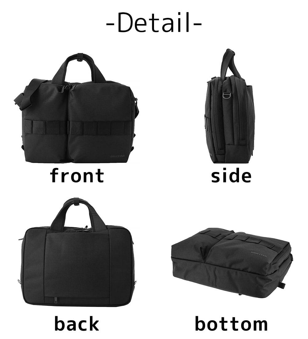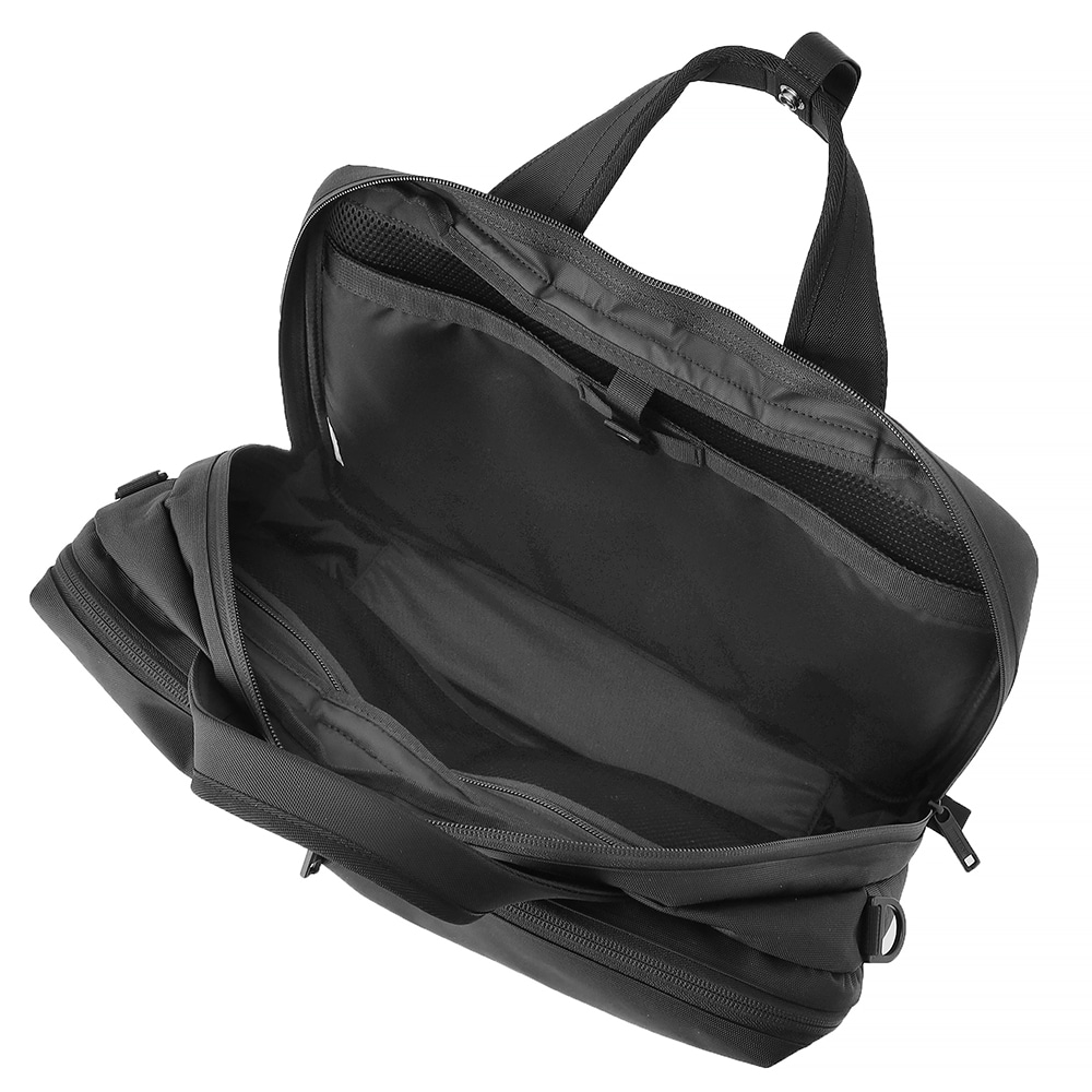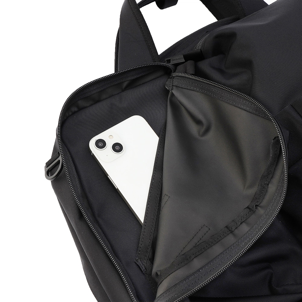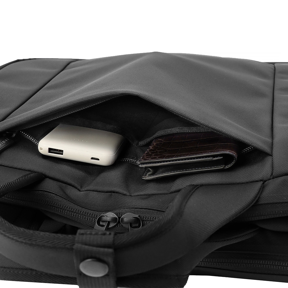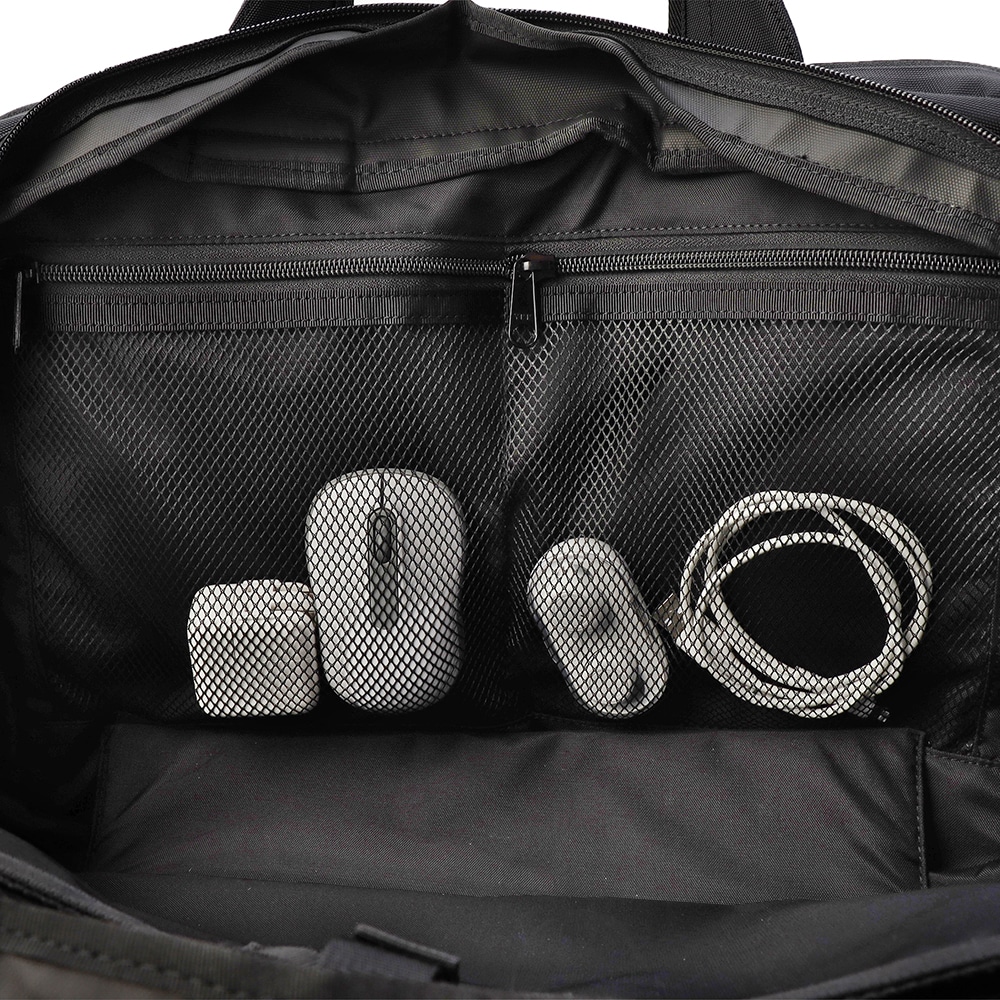 無駄を省いたデザインとオールブラックの色使いがソリッドな2WAYブリーフケース。